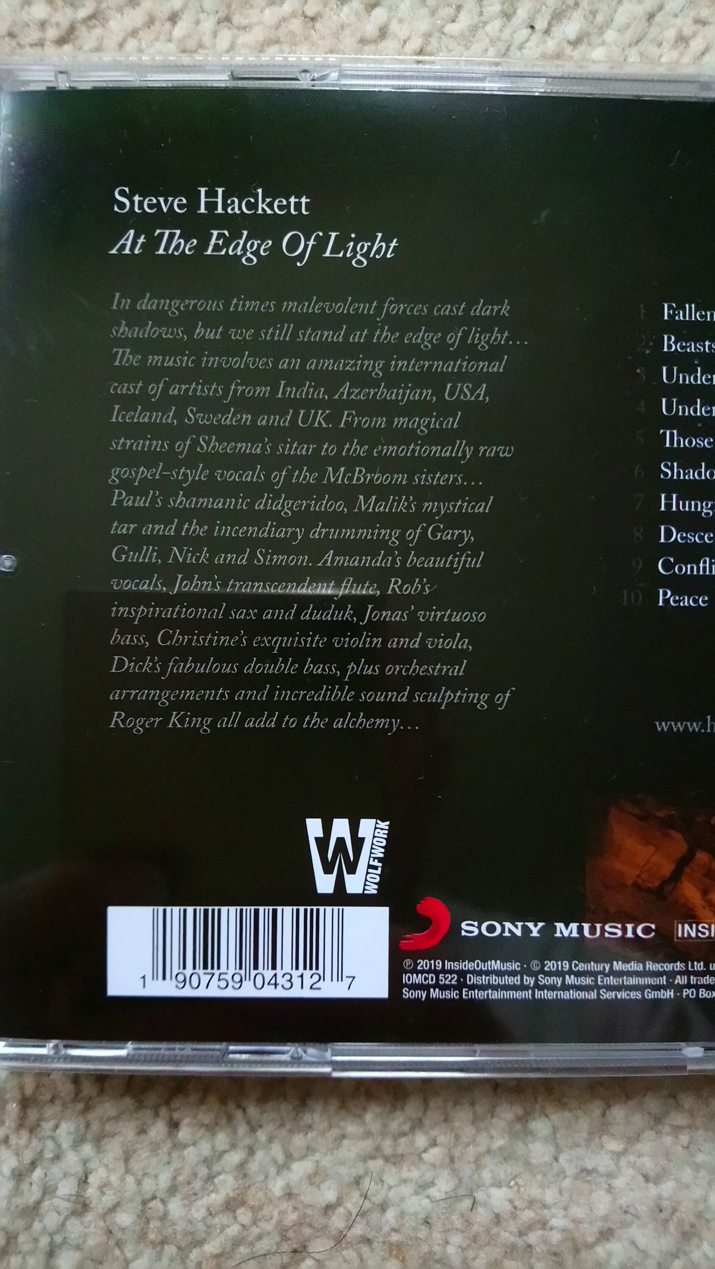 Then, in August 2018, just prior to my birthday, I was enormously honoured when Steve asked me to play my Didgeridoo on one of his songs on his forthcoming solo album ‘At the Edge of Light’.